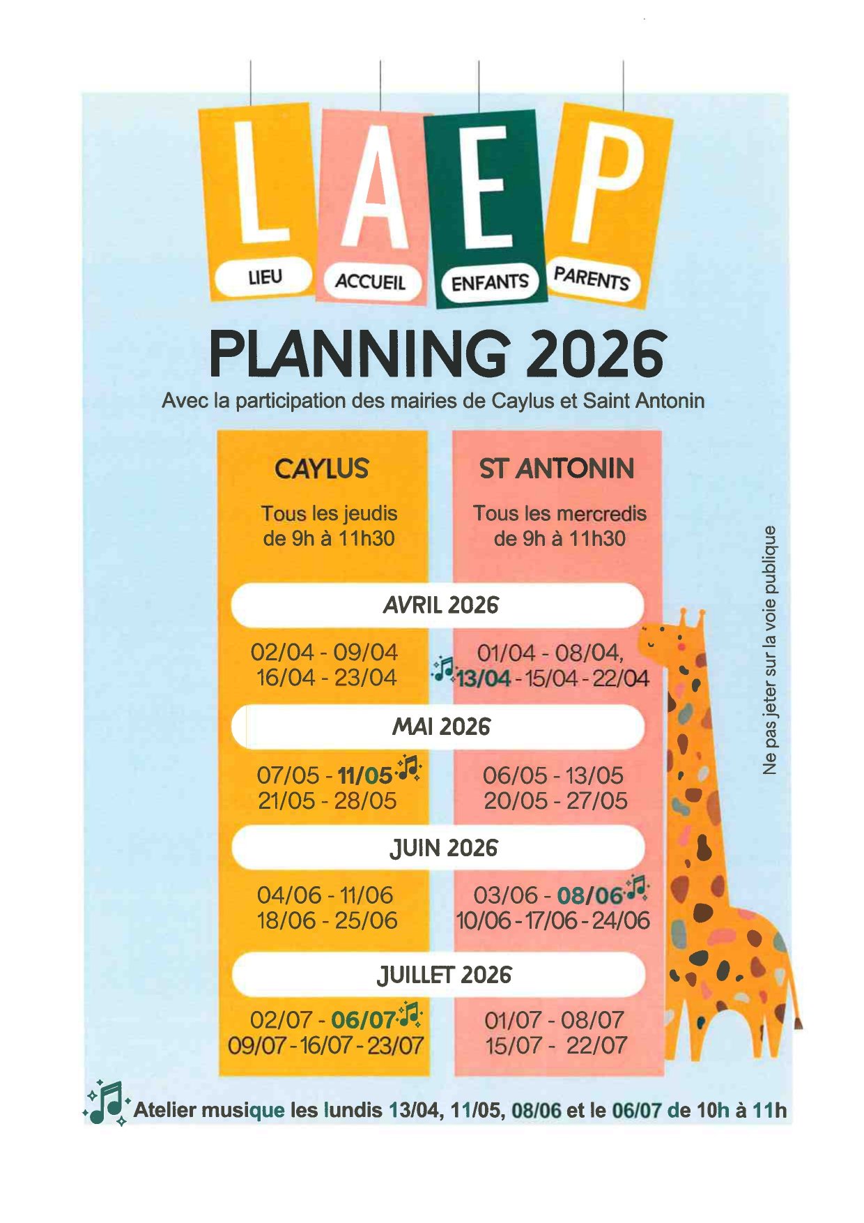 PLANNING DU LIEU D'ACCUEIL ENFANTS-PARENTS (LAEP) AVRIL-JUILLET 2026