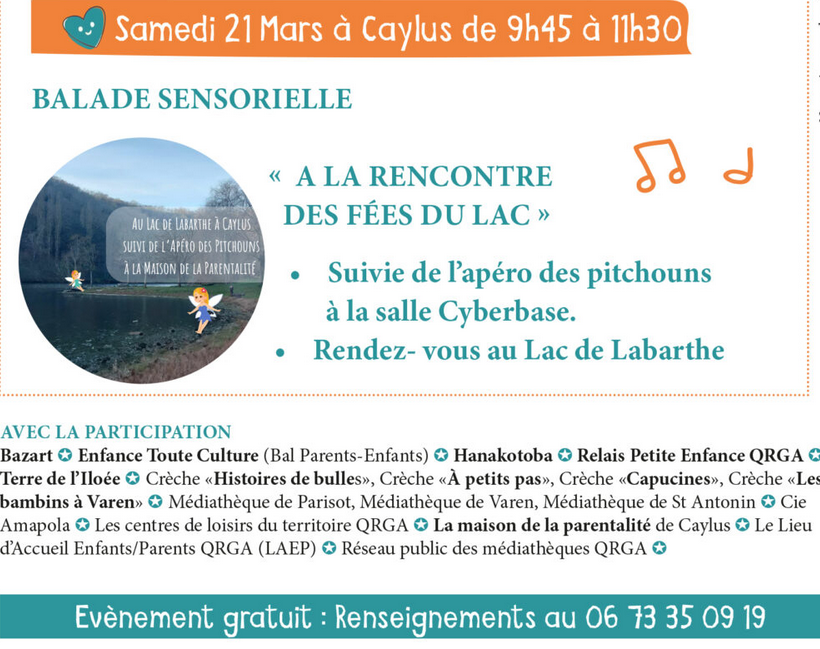 Dans le cadre de la Quinzaine de la Petite Enfance, petits et grands sont conviés à une balade sensorielle autour du lac de Labarthe, "A la rencontre des fées du lac".