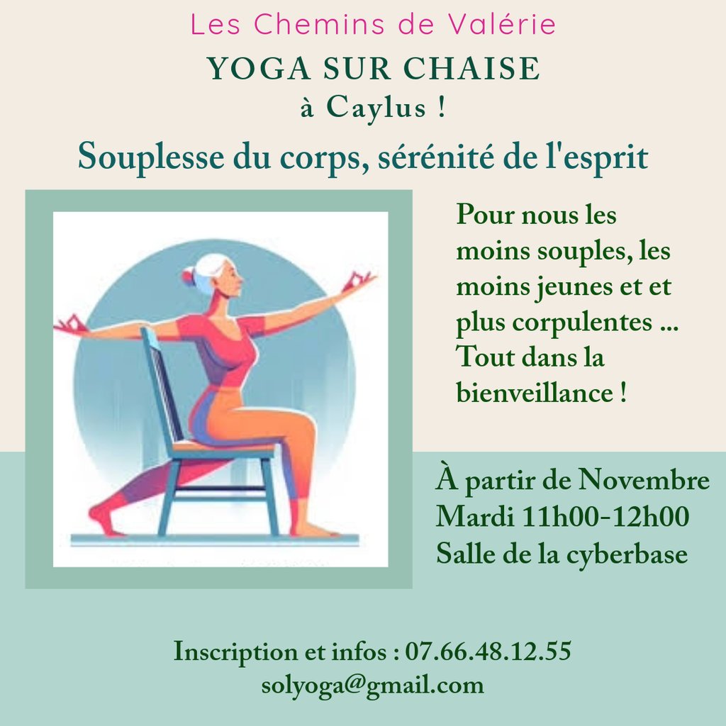- MARDI : Yoga sur chaise avec Sol OLSSON 11h - 12h renseignements 07.66.48.12.55